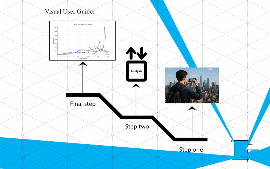 Since the foundation of this application is based on the optical device (viewer) used by observers in urban environments, it requires its own specialized hardware. After installing the camera-equipped glasses and walking through urban spaces, the captured images should be uploaded to the application. Based on analyses of color in the urban landscape, the system will generate a color histogram as output.